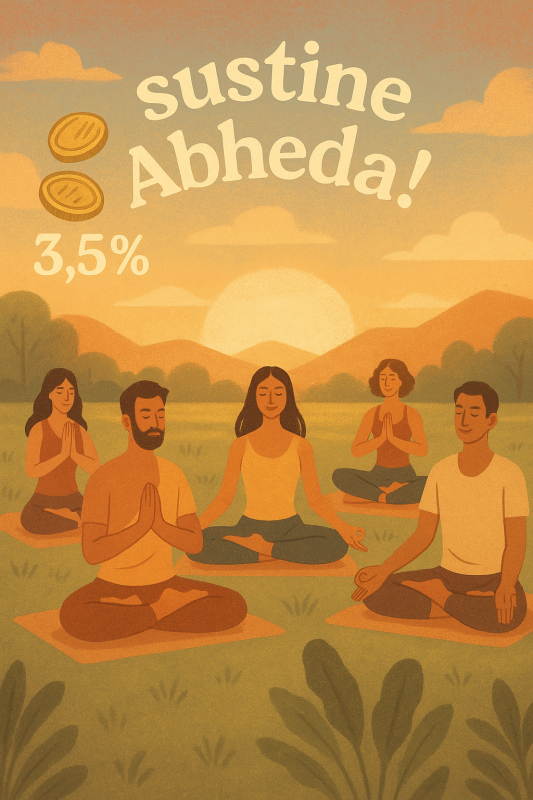 Directionarea a 3,5% din impozitul pe venit datorat statului, catre Asociatia Societatea Academica Adanima pentru Tranformare si Cunoastere de Sine, asociatie nonprofit care sustine Comunitatea Naturala a Yoghinilor. Banii respectivi oricum sunt ”donati” statului, e alegerea dumneavoastra sa-i spuneti ce sa faca cu 3,5% din ei.