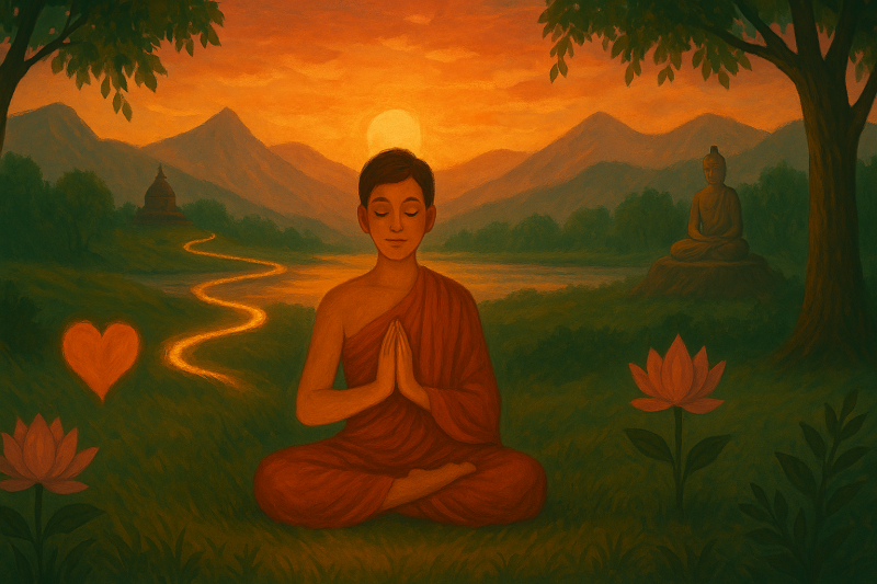 - Iubirea si bunatatea, care in Sanscrita are denumirea de maitri, sau metta (in Pali – limba sacra in care au fost scrise primele texte buddhiste ) este o stare care presupune „dorinta celui care mediteaza, ca toate fiintele simtitoare din Univers, fara nici o exceptie, sa fie fericite. ”