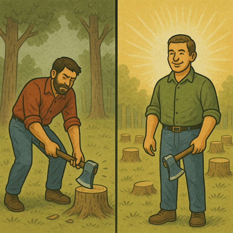 Cei doi tăietori de lemne își foloseau securile cu aceeași măiestrie, dar cu metode diferite: