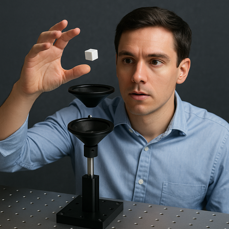 <>Studiul publicat in Studiile Academiei Nationale de Stiinte din Elvetie, descriu modul in care obiectele plasate intre doua suprafete orizontale, cea de jos care emite unde sonore de inalta frecventa si cea de sus care reflecta undele inapoi pot levita și pot fi manipulate.