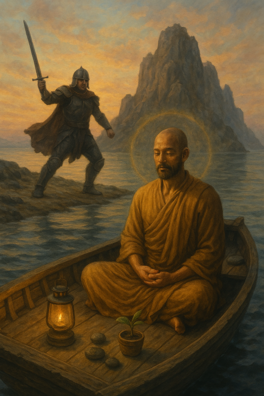 <>Într-o barcă erau un înțelept zen, un spadasin si încă vreo câțiva bărbati.